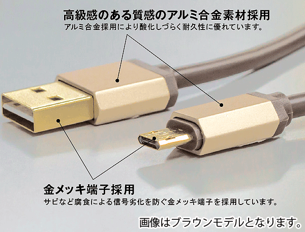 リバーシブルUSB-MicroUSB接続ケーブルGREEN HOUSE GH-UCSMBWA50-BRUSB2.0A(オス)-MicroUSB B(オス)●端子:金メッキ●長さ:約50cm●リバーシブル端子●2A出力アダプタ対応●高品質アルミ合金素材コネクタ●色:ブラウン