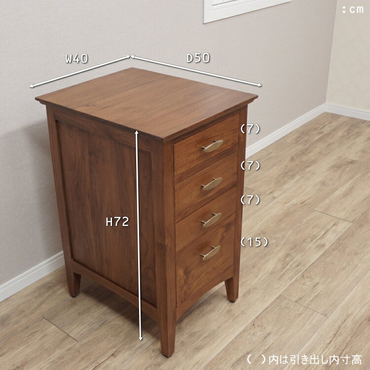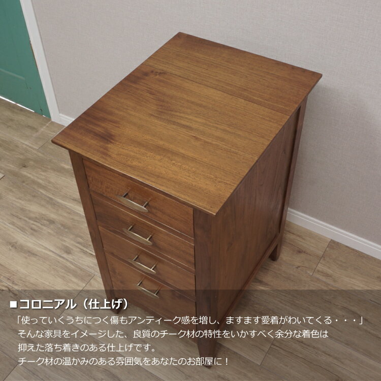 チーク無垢 ワゴン デスク 北欧テイスト 机 木製 おしゃれ おすすめ 収納 コンパクト 幅40cm パソコンデスク アンティーク アジアン家具 サイドデスク 引き出し 書斎 書類整理 『ND/サイドチェスト4D』