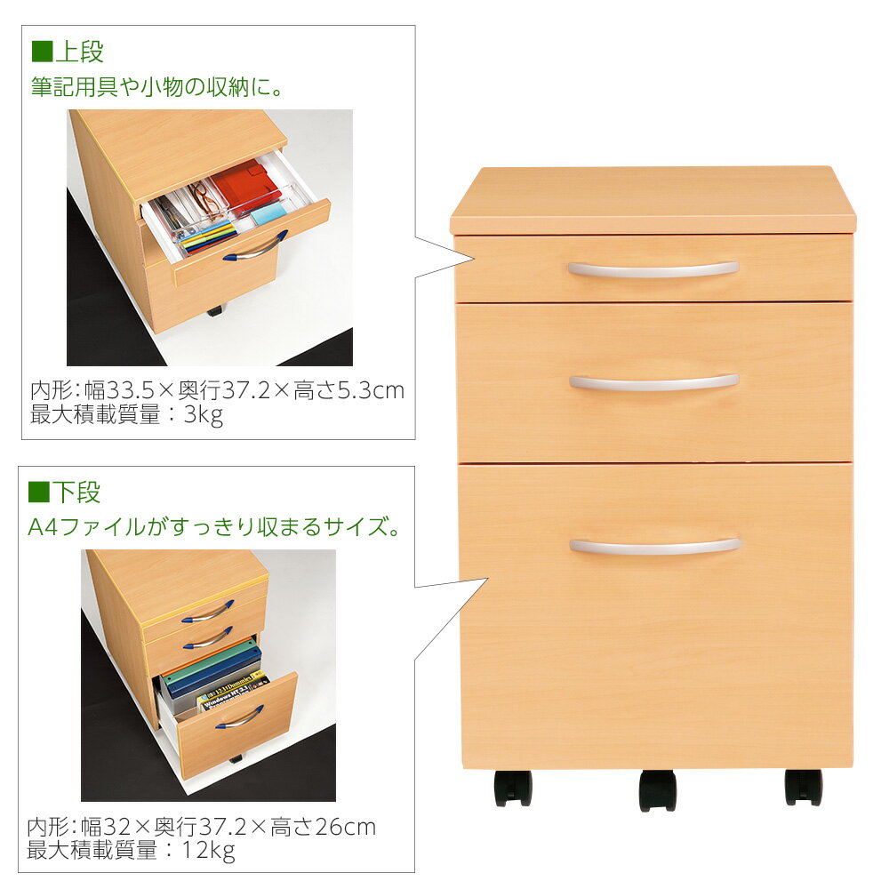 キャビネット 木製 ( ワゴン デスクワゴン サイドワゴン デスクキャビネット サイドキャビネット 木製ワゴン 木製キャビネット オフィスワゴン オフィスキャビネット Garage ガラージ チェスト 3段 キャスター付き 引出し A4 ファイル 収納 オフィス 会社)
