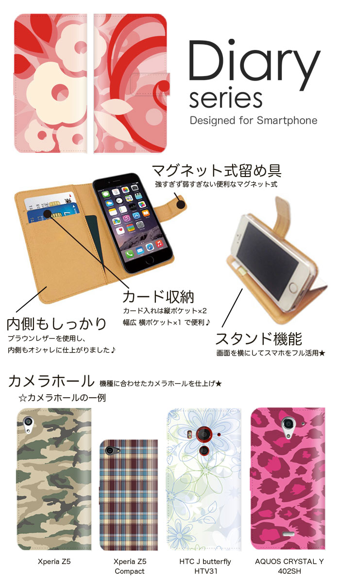 【対応機種】docomoGalaxy Feel2 SC-02L【商品内容】・手帳型スマートフォン ケース【商品素材】・PUレザー・プラスチック(ケース)【注意事項】・ページ内写真とと実物では多少の色の違いが生じる事があります。